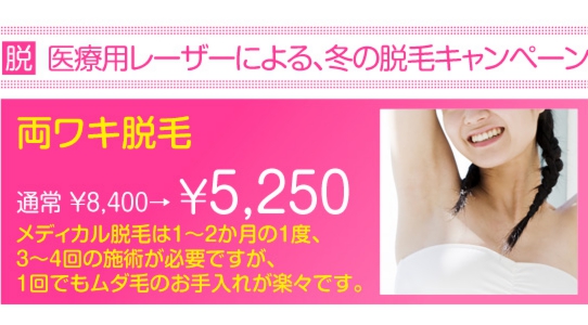 ※美容診療が始めての方は、初診料として3150円が別途必要となります。※現時点で当クリニックで脱毛を始めている方でもキャンペーン対象となります。