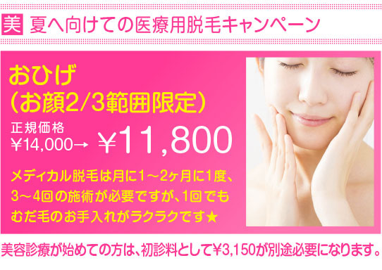 ※美容診療が初めての方は初診料として3150円が別途必要となります。