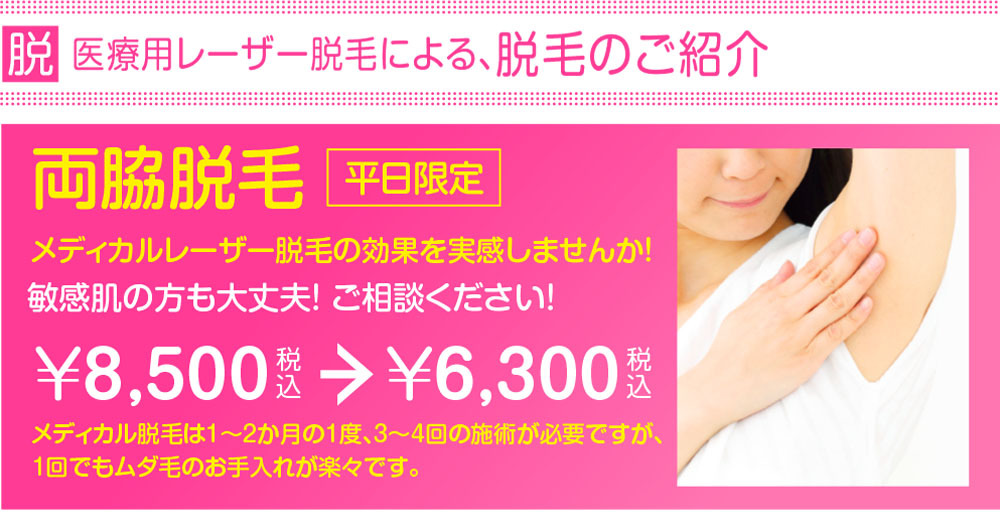 ※美容診療が初めての方は、初診料として3500円が別途必要となります。