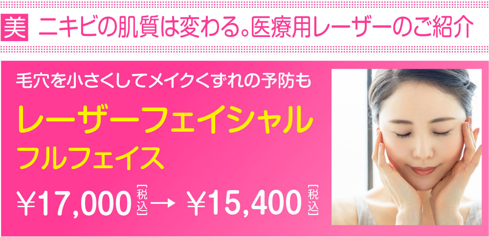※美容診療が初めての方は、初診料として3500円が別途必要となります。