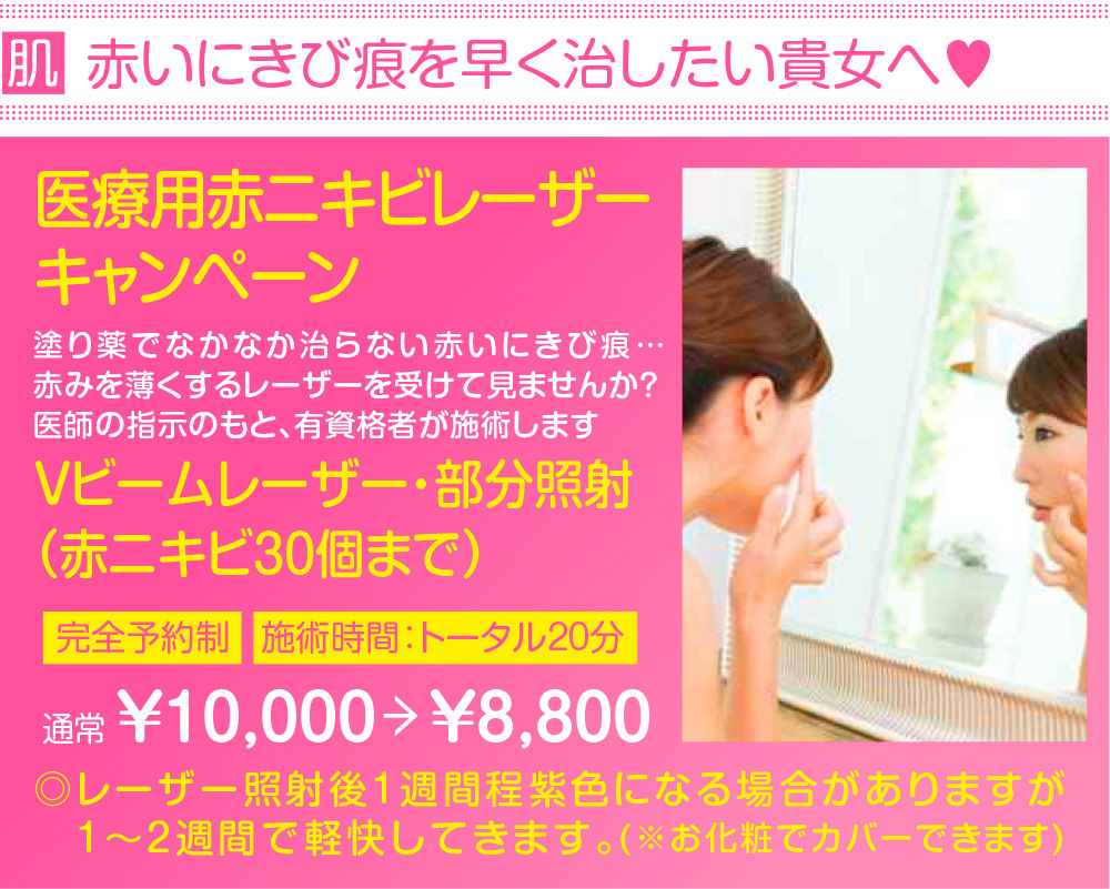 ※美容施術が初めての方は、初診料として3500円が別途必要となります。