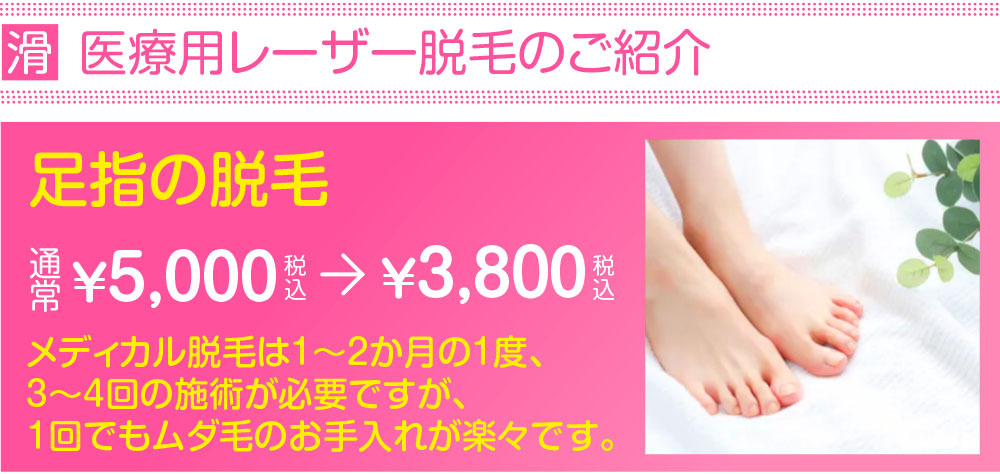 ※毛を剃っていただけていない場合、剃毛料金を500円(両足指)いただきますのでご了承願います。