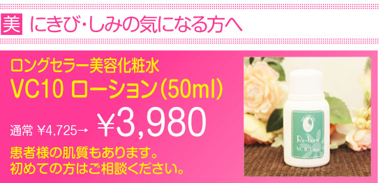 ※美容診療が始めての方は、初診料として3150円が別途必要となります。
