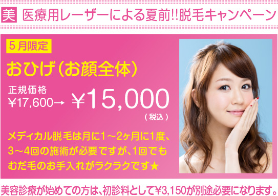 ※現時点で当クリニックで脱毛を始めている方でもキャンペーン対象となります。