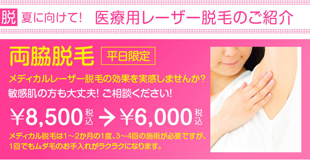 ※美容診療が初めての方は、初診料として3500円が別途必要となります。