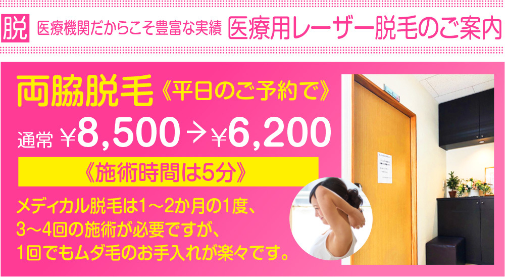 ※レーザー室はご予約が空いていない曜日、時間帯があります。ご希望のお時間に添えない場合がございますのでご理解ください。