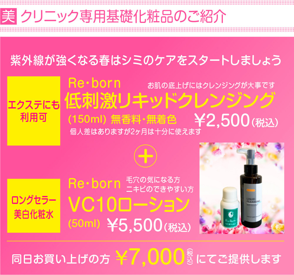※美容施術が初めての方は、初診料として3500円が別途必要となります。