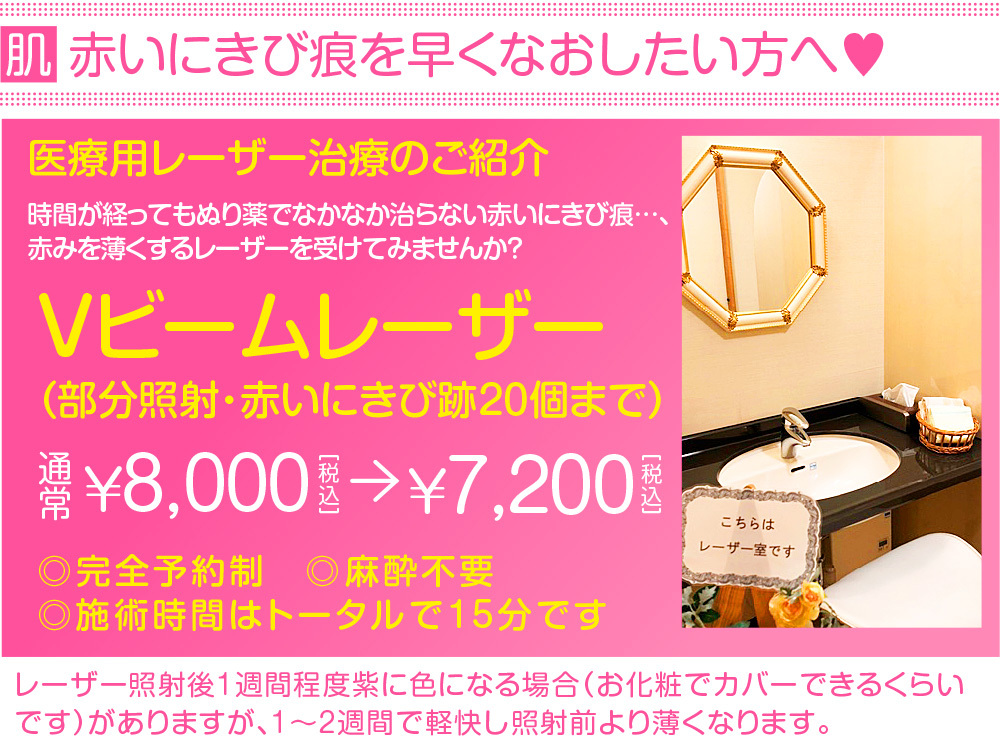 ※美容施術が初めての方は、初診料として¥3500円が別途必要となります。