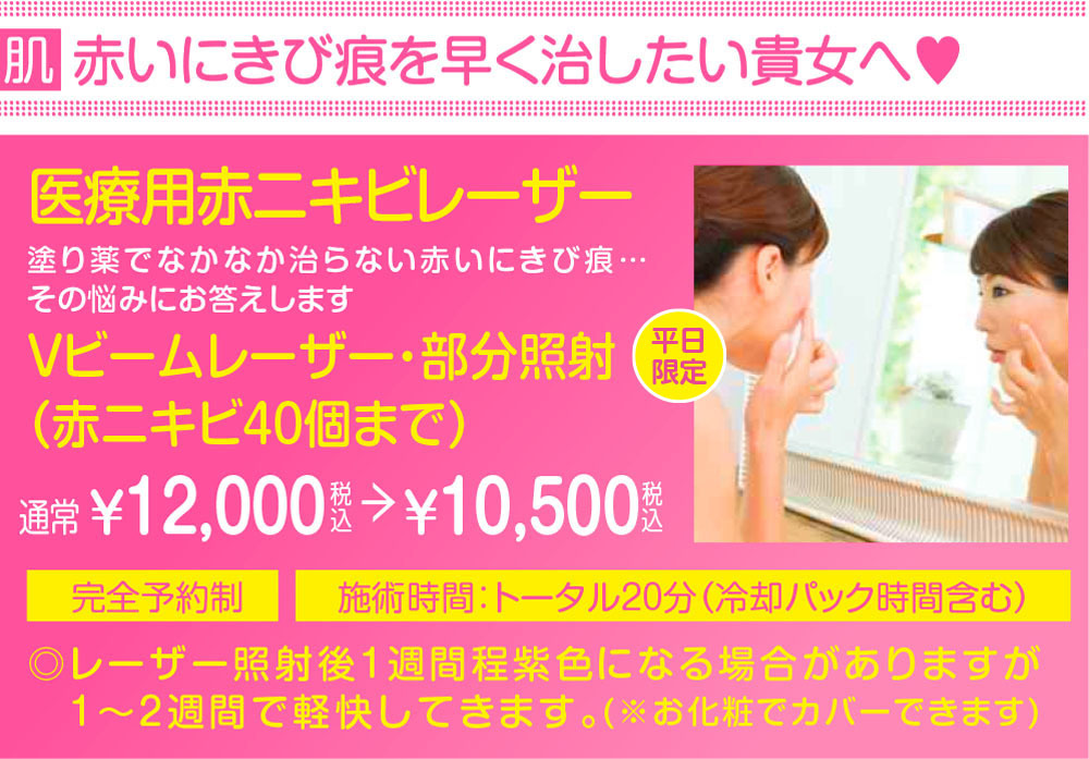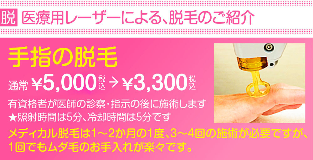 ※美容施術が初めての方は、初診料として¥3,500が別途必要となります