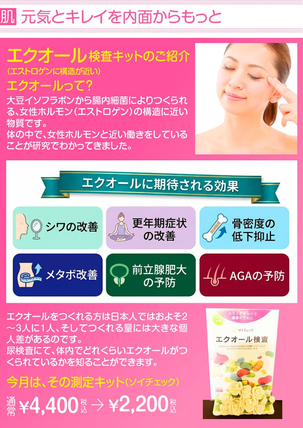 ※現在エクオールを内服されている方も3日間内服を止めればご自身の生産量を測定できます。
