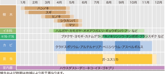 ダニ、ペット、昆虫など、通年性のアレルゲンにも注意が必要です。
