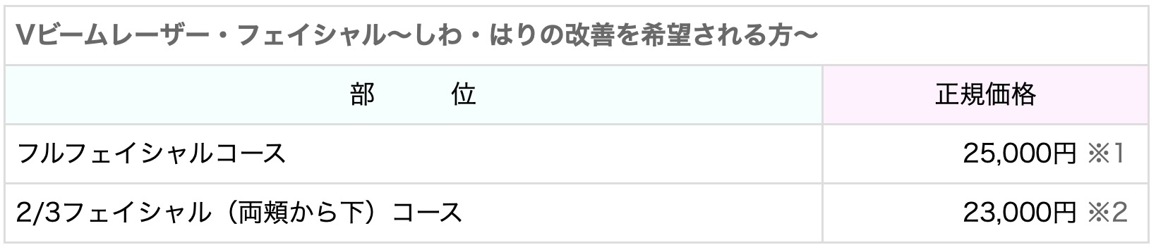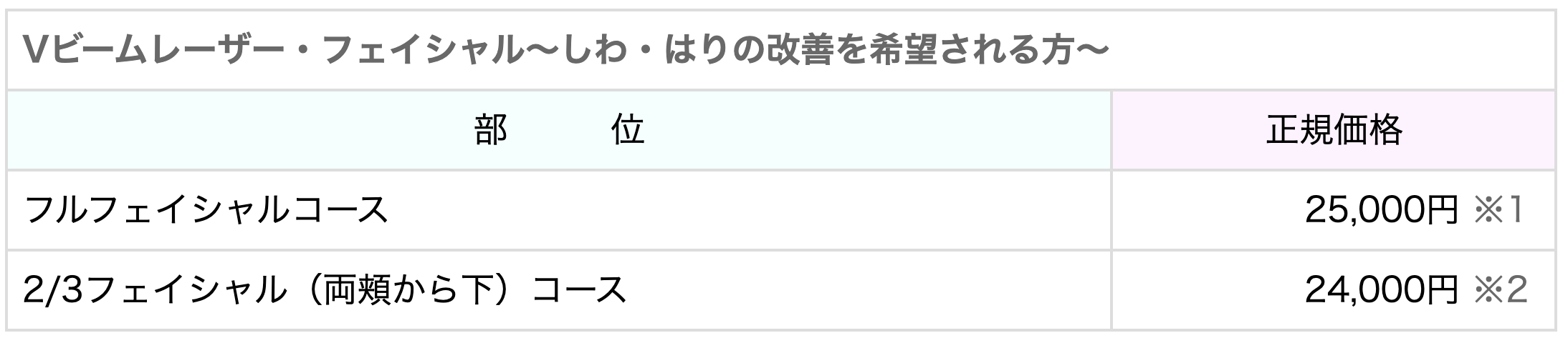※1:今までフェイシャルを5回以上行った方は1回のみ25,000円。その後は24,000円。