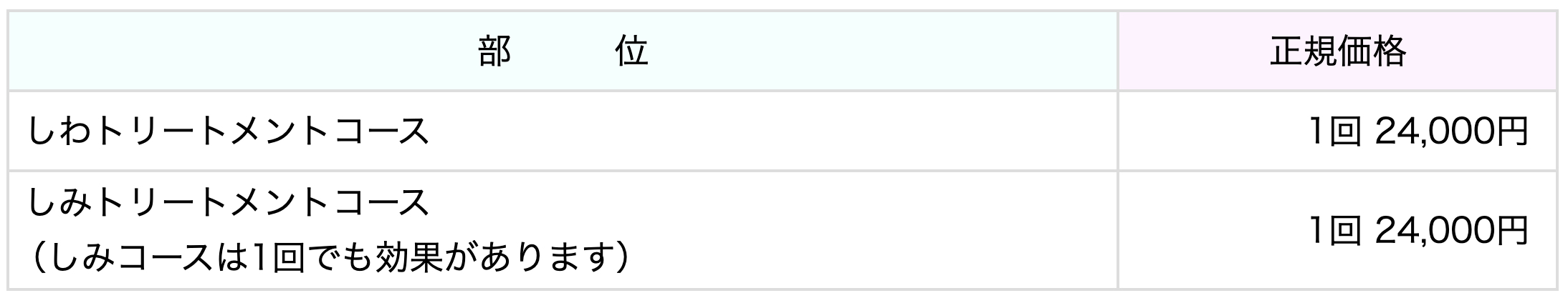 ※2:今までフェイシャルを5回以上行った方は1回のみ24,000円。その後は23,000円。