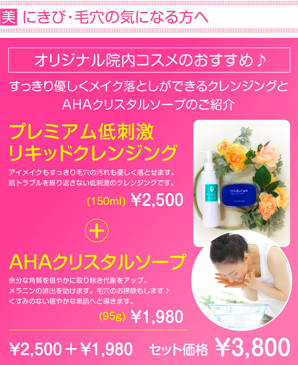 ※美容診療が初めての方は、初診料として3500円が別途必要となります。