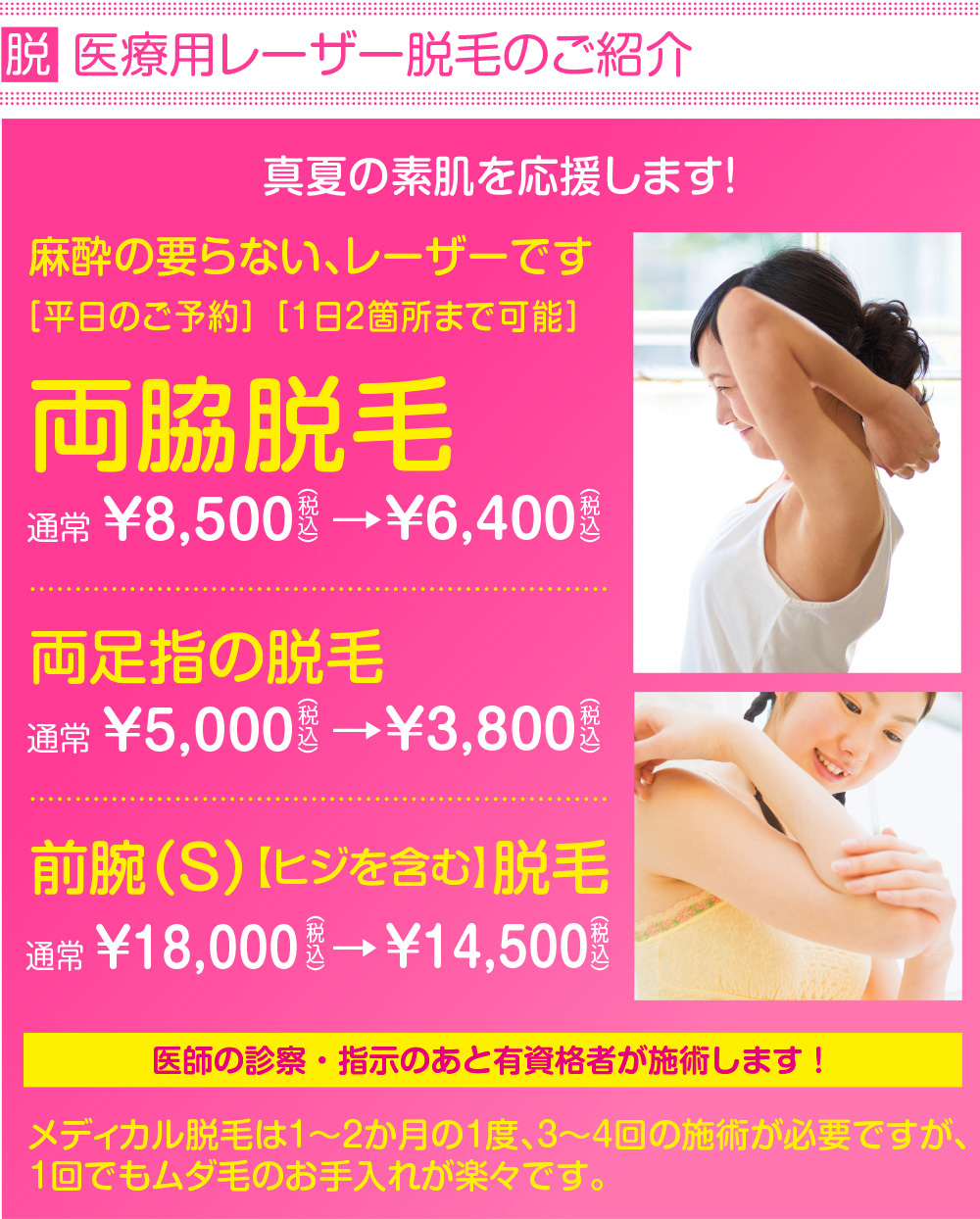※来院前に脱毛部位を必ず剃毛してご来院ください。